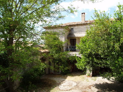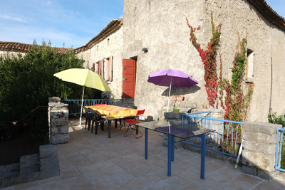 L'entrée se fait par la cour intérieur par le porche. La cours et les terrasses sont les éléments essentiels des beaux jours, qui sont assez abondant en Ardèche. Les laurier sauces y dispense leur ombrage bienfaisant.