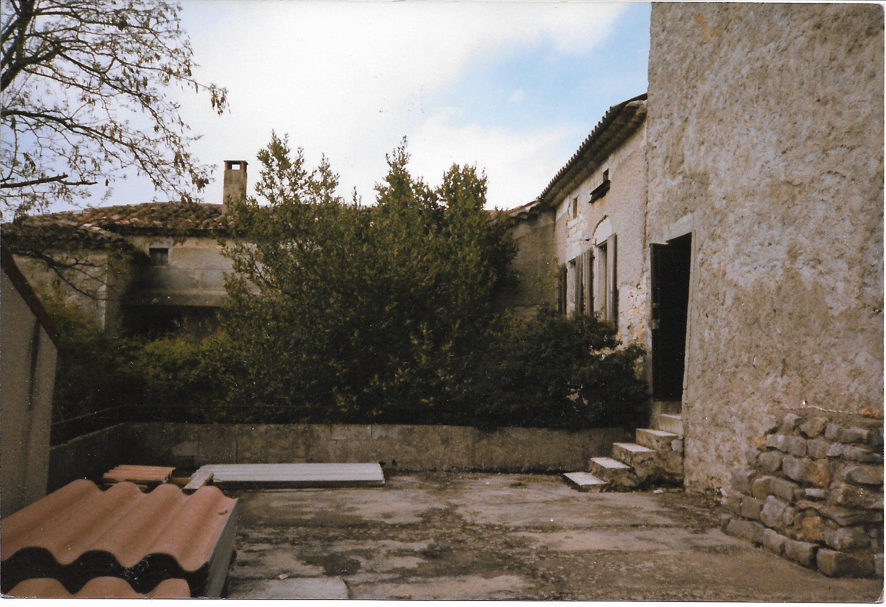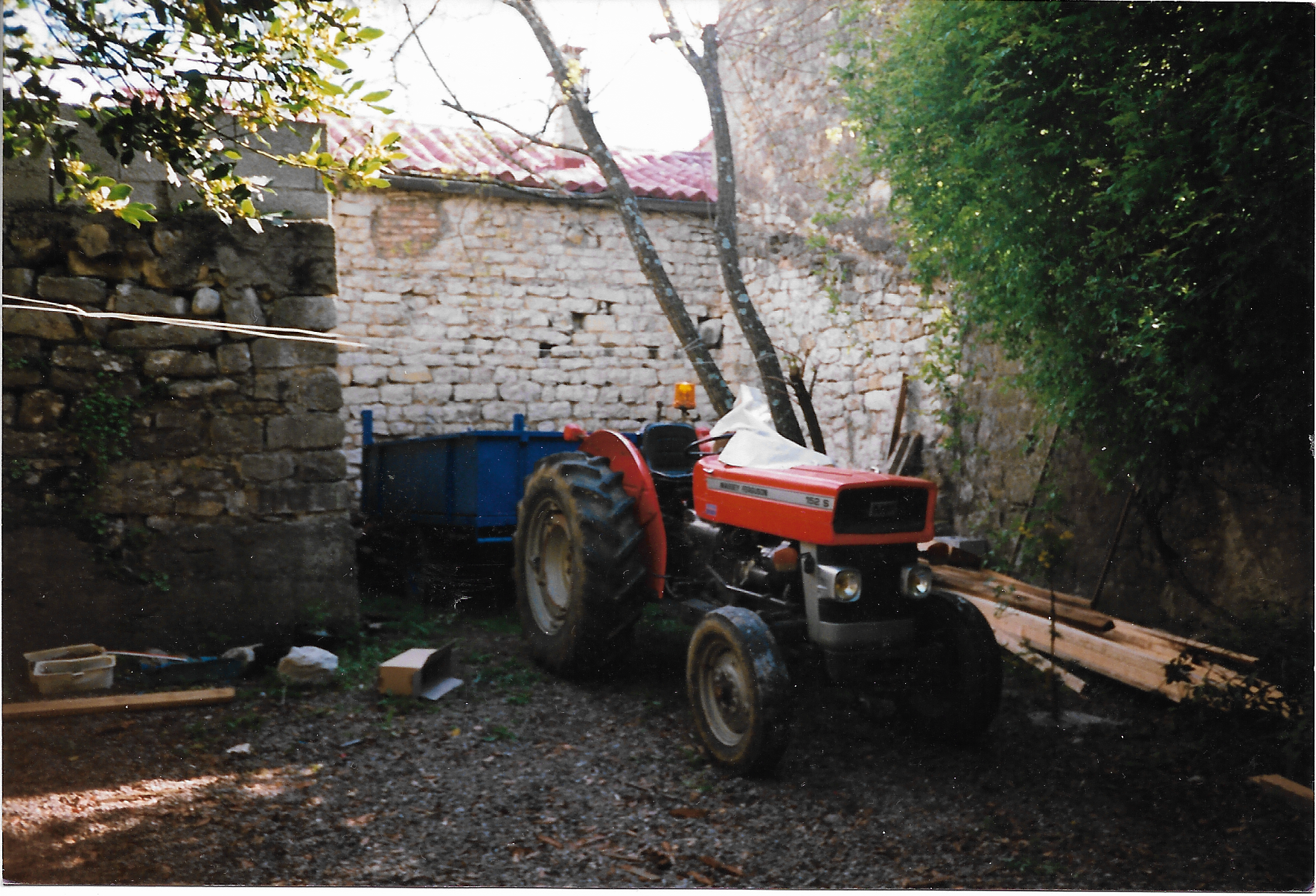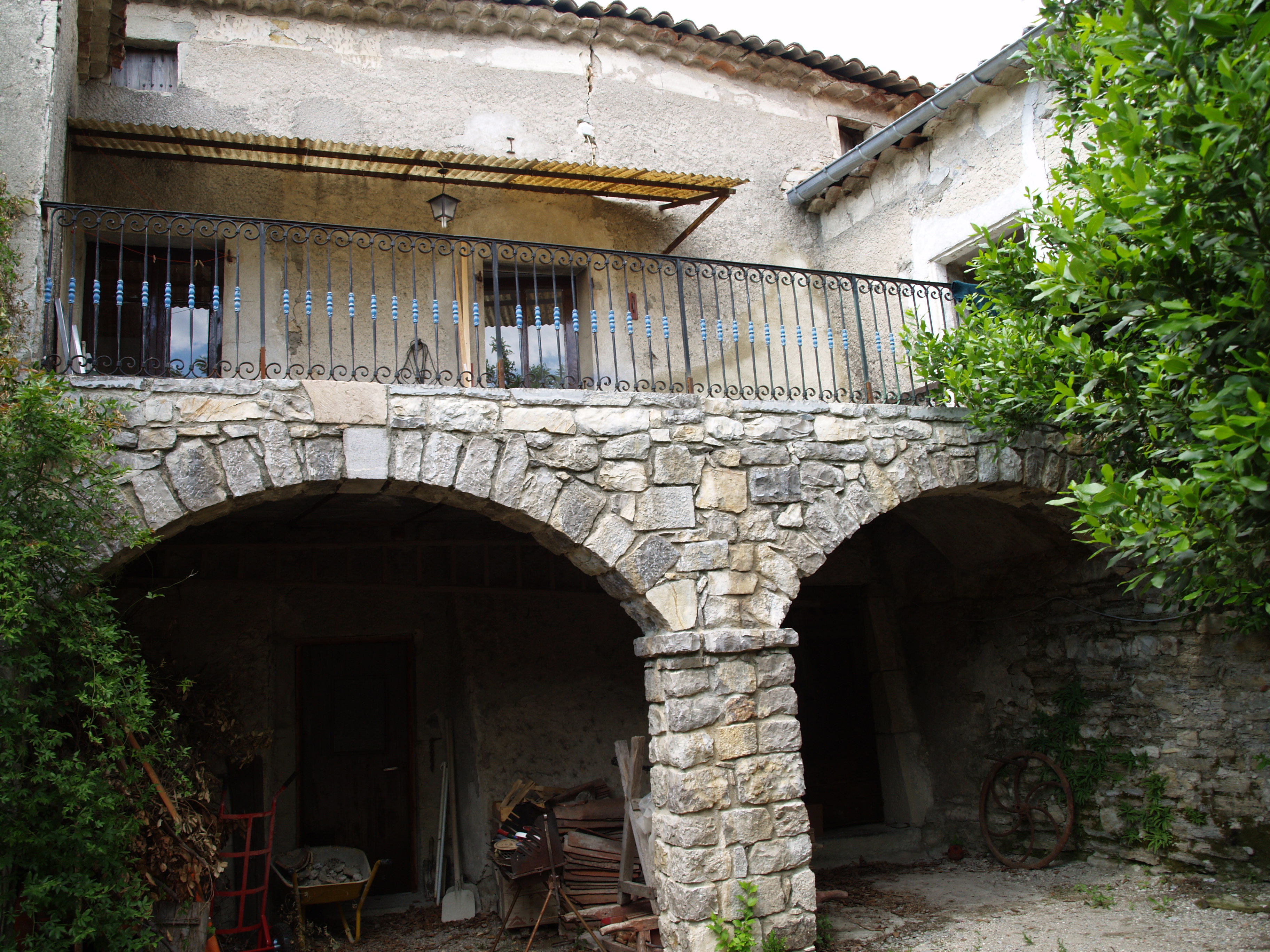 Trois ans plus tard, l'ancienne maison écroulée à l'intérieur de la grande terrasse menaçait crouler sur la ruelle. Un maçon dont nous avions fait la connaissance est venu à notre rescousse. Nous avons abattu les parties inutiles et trop pourrie et consolidé ou reconstruit le reste. L’ami Antonio, c'est le nom du maçon à poursuivi un bout de chemin avec nous. C'est lui qui a réalisé les arches sous la petite terrasse. Puis, plus tard, il a fait la troisième voûte sous la grande terrasse que j'avais vidée (environ 80 tonnes) avec un bob4 et un tracteur prêté et Vincent Grollot. On a ensuite, toujours avec Antonio construit l'escalier extérieur qui depuis la cours intérieur donne accès à la grande terrasse. La maison commençait à être sécurisée et en même temps, la cours intérieur avait bien grandi.