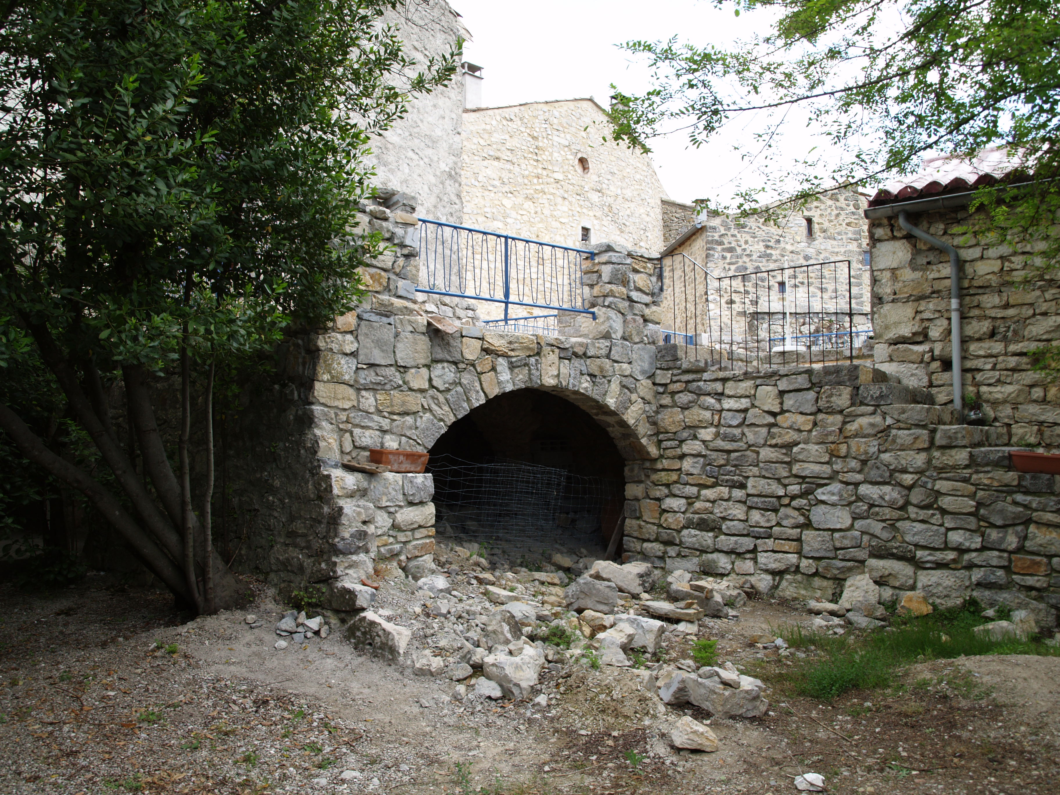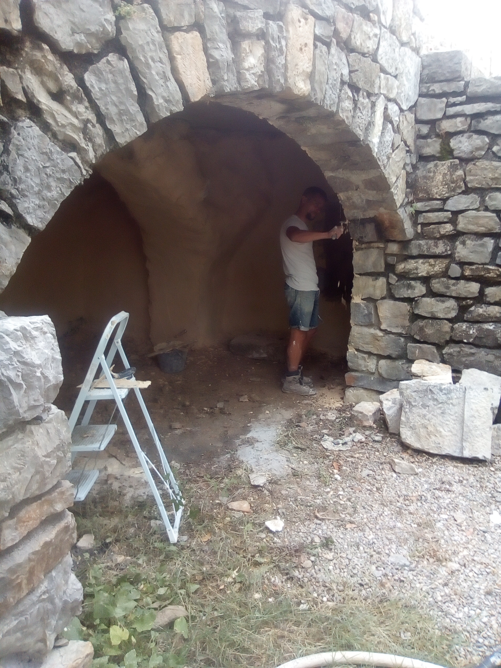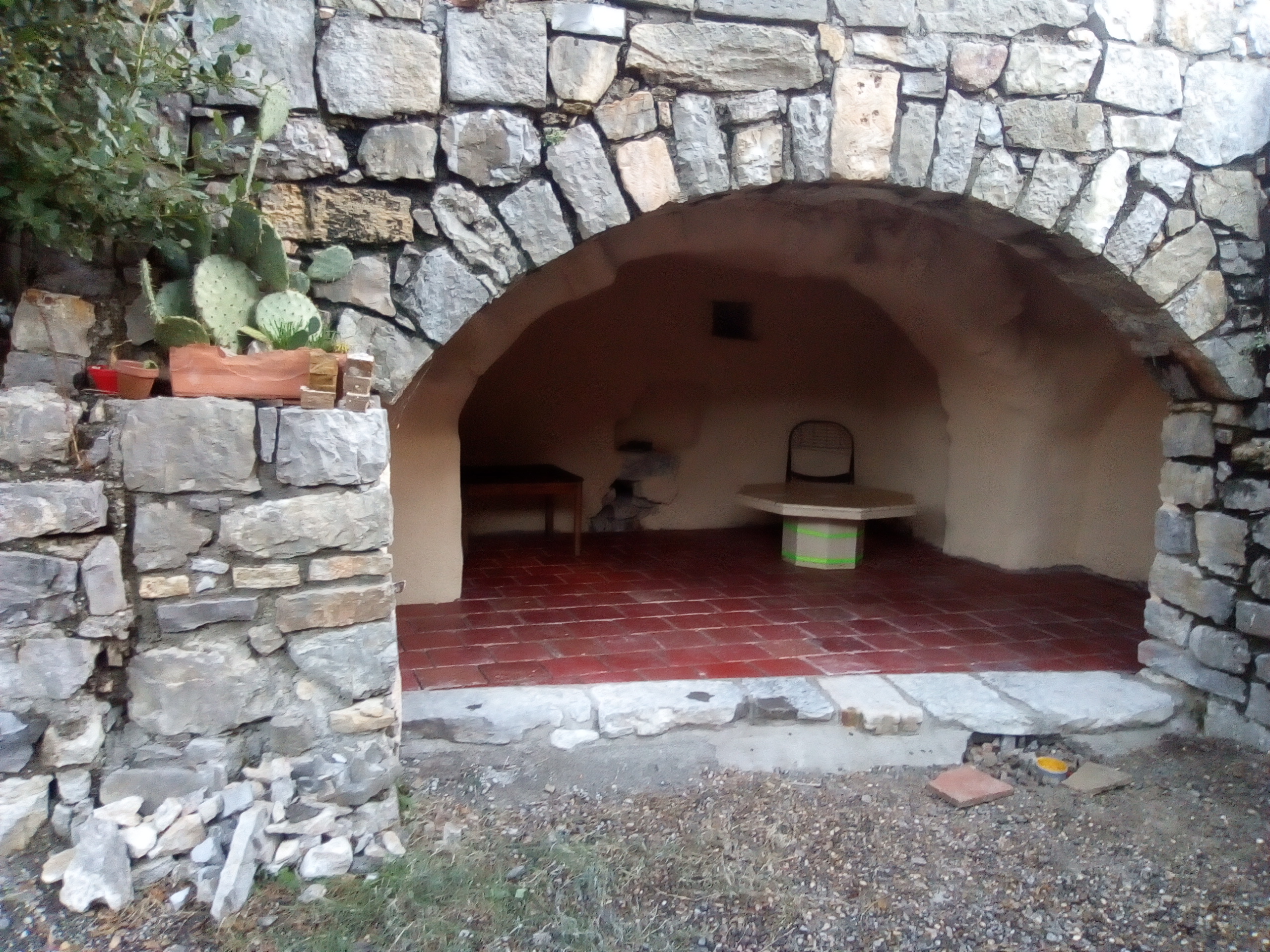 Trois ans plus tard, l'ancienne maison écroulée à l'intérieur de la grande terrasse menaçait crouler sur la ruelle. Un maçon dont nous avions fait la connaissance est venu à notre rescousse. Nous avons abattu les parties inutiles et trop pourrie et consolidé ou reconstruit le reste. L’ami Antonio, c'est le nom du maçon à poursuivi un bout de chemin avec nous. C'est lui qui a réalisé les arches sous la petite terrasse. Puis, plus tard, il a fait la troisième voûte sous la grande terrasse que j'avais vidée (environ 80 tonnes) avec un bob4 et un tracteur prêté et Vincent Grollot. On a ensuite, toujours avec Antonio construit l'escalier extérieur qui depuis la cours intérieur donne accès à la grande terrasse. La maison commençait à être sécurisée et en même temps, la cours intérieur avait bien grandi.