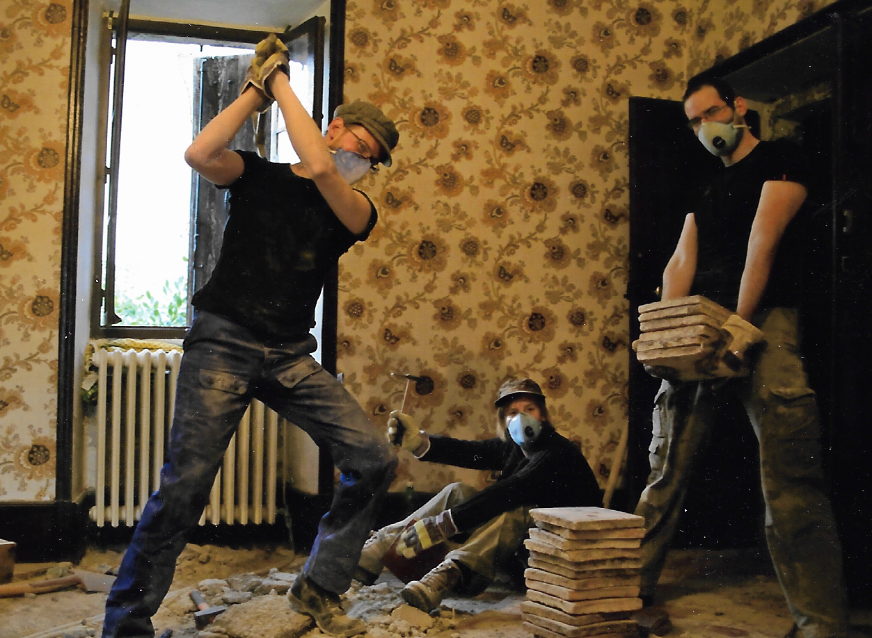 Pris de passion pour ce lieu, nous avons, avec beaucoup d'ami restauré cette ancienne ferme. Le toit, les arches de la cours, les terrasses, les voûtes, etc ... pas loin de 100 tonnes remuées ! Le gros est fait et ce qui reste de lourd, nous le déléguons. Maintenant nous sommes un peu plus dans le léger. Y a t'il encore le choix ?