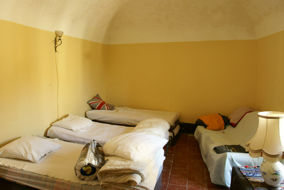 La chambre romane jouxte la salle à manger. Son nom provient évidemment de son plafond voûté. Ceci est relativement rare dans ce type de construction ou le rez-de-chaussé, qui peut être partiellement enterré en fonction de la pente, est fait de pièces toutes voûtées, mais l'étage, espace à vivre, est lui plafonné comme dans la salle à manger. Il se pourrait bien que la salle romane et la pièce dessous, soient plus ancienne. Cette chambre à plusieurs rôle: actuellement de chambre, puis de coin salon et de liaison avec la grande terrasse. Dans un avenir proche, elle doit perdre son rôle de chambre pour redevenir de plein droit un salon.