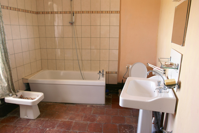 La salle de bain, comprend aussi un WC et est donc bien placée auprès de la salle à manger.